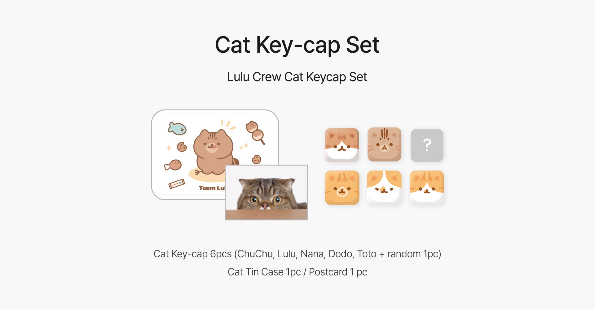 - Cat Key-cap 6pcs (ChuChu, Lulu, Nana, Dodo, Toto + random 1pc)