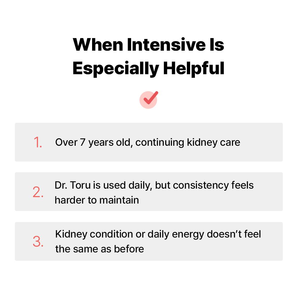 Intensive is designed for ongoing nutritional balance, especially for senior kidney-care cats.