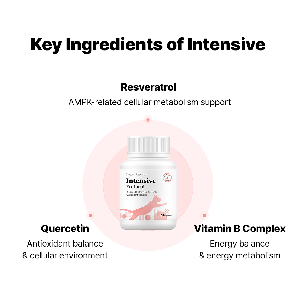 Yes. Intensive Protocol is formulated for cats showing early signs of imbalance or reduced vitality. It supports kidney cell health through AMPK-related nutrients and antioxidantYes. They serve different roles.