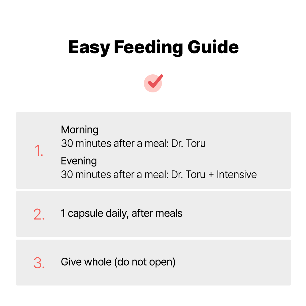 - 30 minutes after a meal: Dr. Toru + Intensive