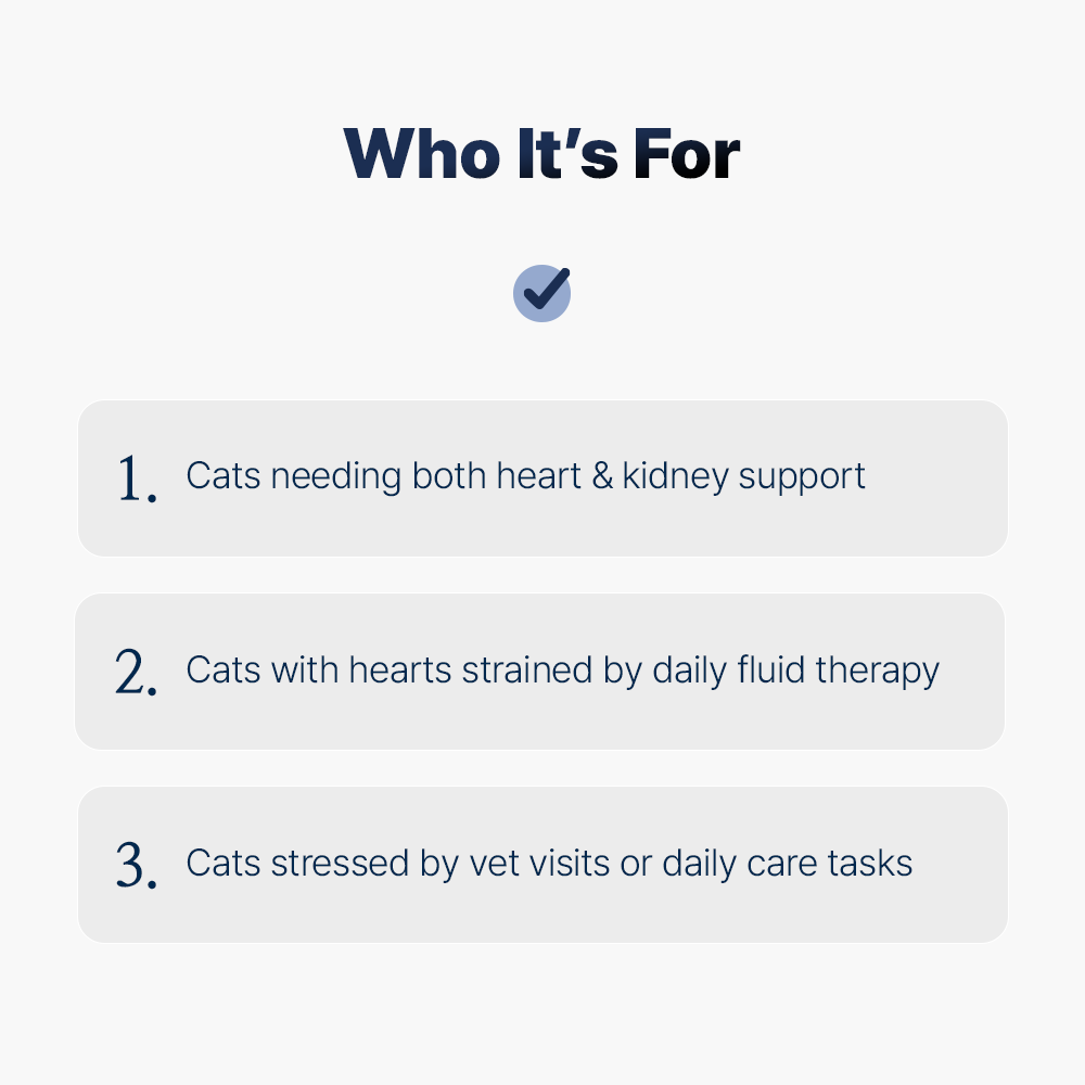 - Cats that need support for both heart and kidney care