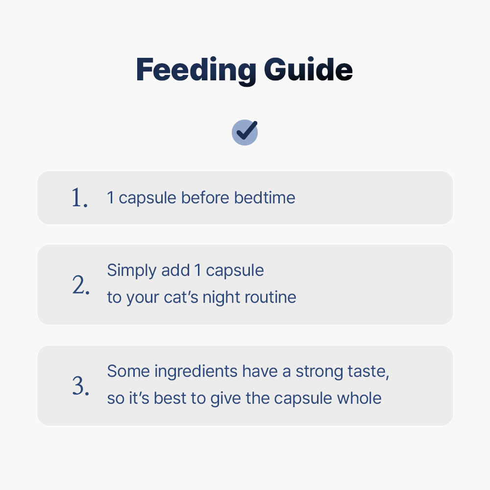 - 1 capsule once daily, right before the guardian goes to bed.
