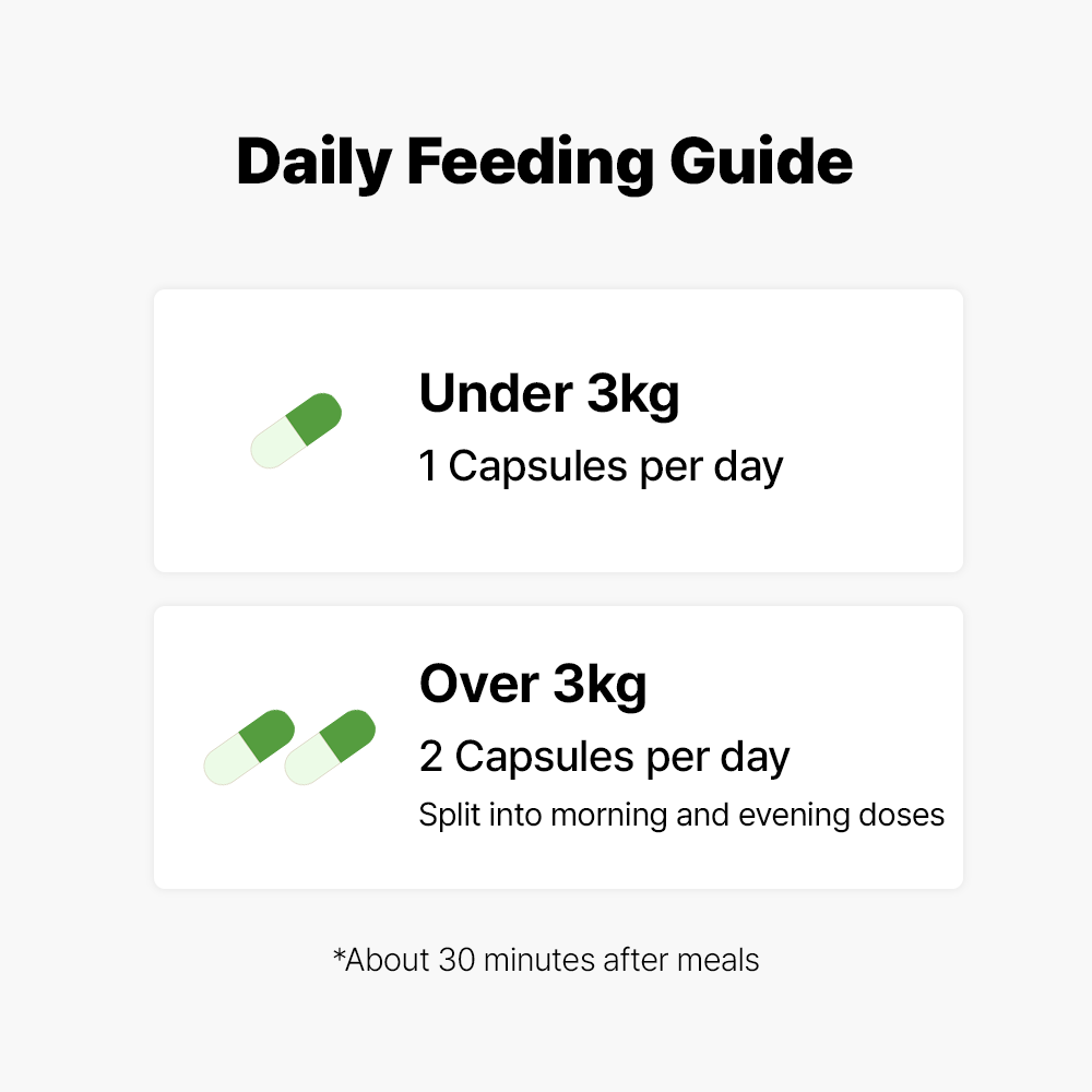- 3 kg and above: 2 capsules per day