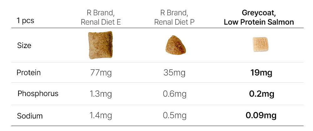 - Ultra-Low Protein · Low Phosphorus · Low Sodium composition